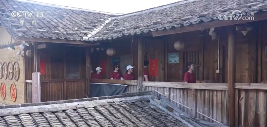 總臺(tái)央視記者 陳燁煒:我身后的這棟樓已經(jīng)有100多年的歷史,鵝卵石鋪成的小院、青磚砌成的外墻以及木質(zhì)結(jié)構(gòu)的房屋,處處在向我們傳遞著古老的文化氣息,多年前這里曾經(jīng)是當(dāng)?shù)鼐用窬幼〉姆课荩鼛啄杲?jīng)過(guò)改造后,已經(jīng)成了很多外地游客慕名前來(lái)的網(wǎng)紅打卡地。