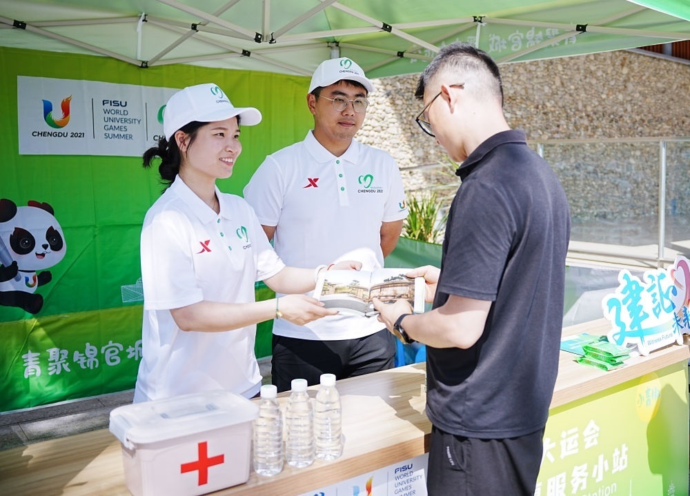 成都的大街小巷,現(xiàn)在隨處可見(jiàn)大運(yùn)會(huì)元素和標(biāo)識(shí)景觀。其中,志愿服務(wù)小站是一道獨(dú)特的風(fēng)景線。28歲的志愿者張思宇這幾天正為來(lái)往游客提供咨詢(xún)等服務(wù)。
