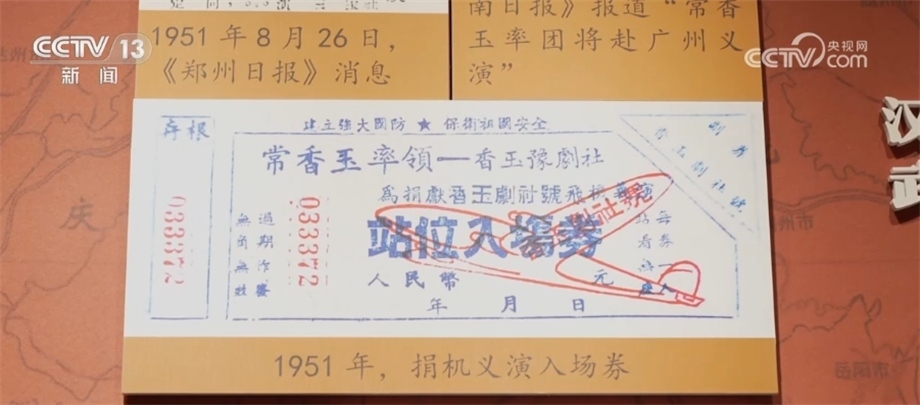 總臺(tái)記者 李恩浩:在我身旁停放的就是常香玉捐獻(xiàn)的米格-15戰(zhàn)斗機(jī)的復(fù)制品,它的原版現(xiàn)在存放在中國(guó)航空博物館。1951年的時(shí)候,常香玉決定和丈夫捐獻(xiàn)一架戰(zhàn)斗機(jī),就是這架“香玉劇社”號(hào)飛機(jī)。