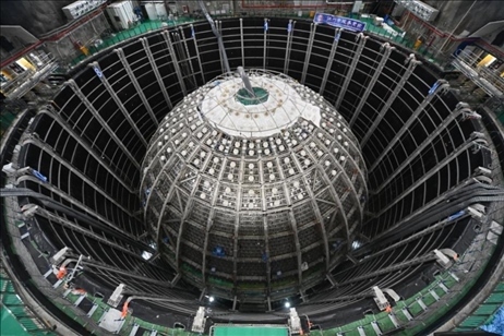 圖為江門中微子地下實驗室中微子探測裝置。(中國科學院高能物理研究所供圖)