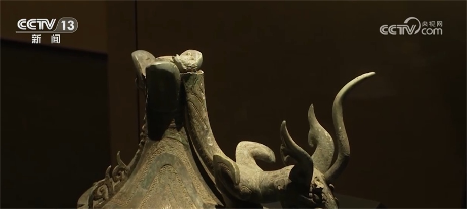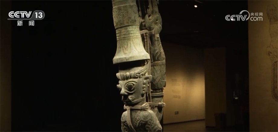 北京大學(xué)考古文博學(xué)院副教授 趙昊:為什么我們不直接把這件器蓋放在這個尊之上,或者包括那個持龍人像放在器蓋之上,這涉及到一個文物安全的問題。因為相對來說這些器物本體已經(jīng)有一些變形,第二就是它長期埋在地下,本體已經(jīng)變得比較疏松了,如果我們將它原來整體復(fù)原蓋在一起,重量會很大,可能對于下面的支撐壓迫比較重。