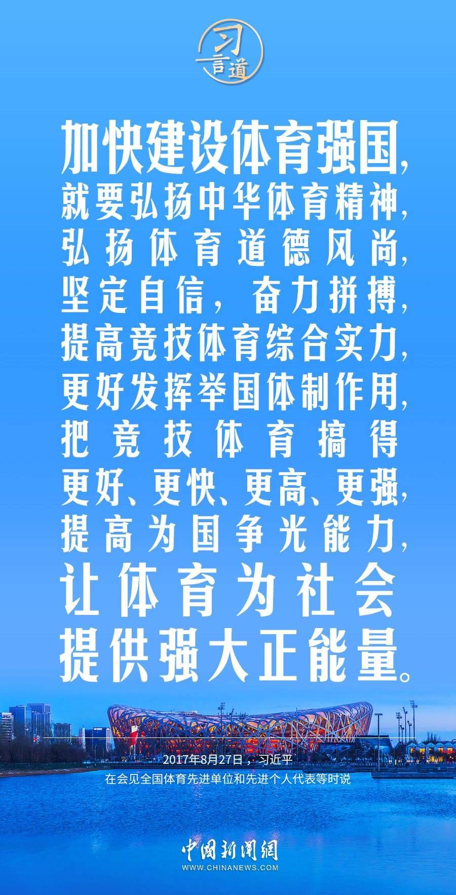 習(xí)近平總書記高度重視體育強(qiáng)國建設(shè),多次作出重要論述,強(qiáng)調(diào)讓體育為社會提供強(qiáng)大正能量。