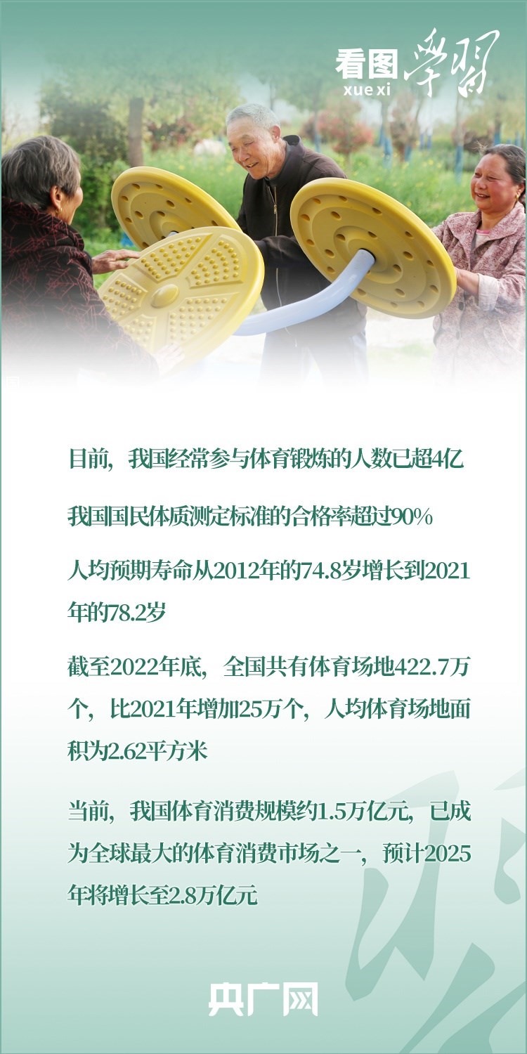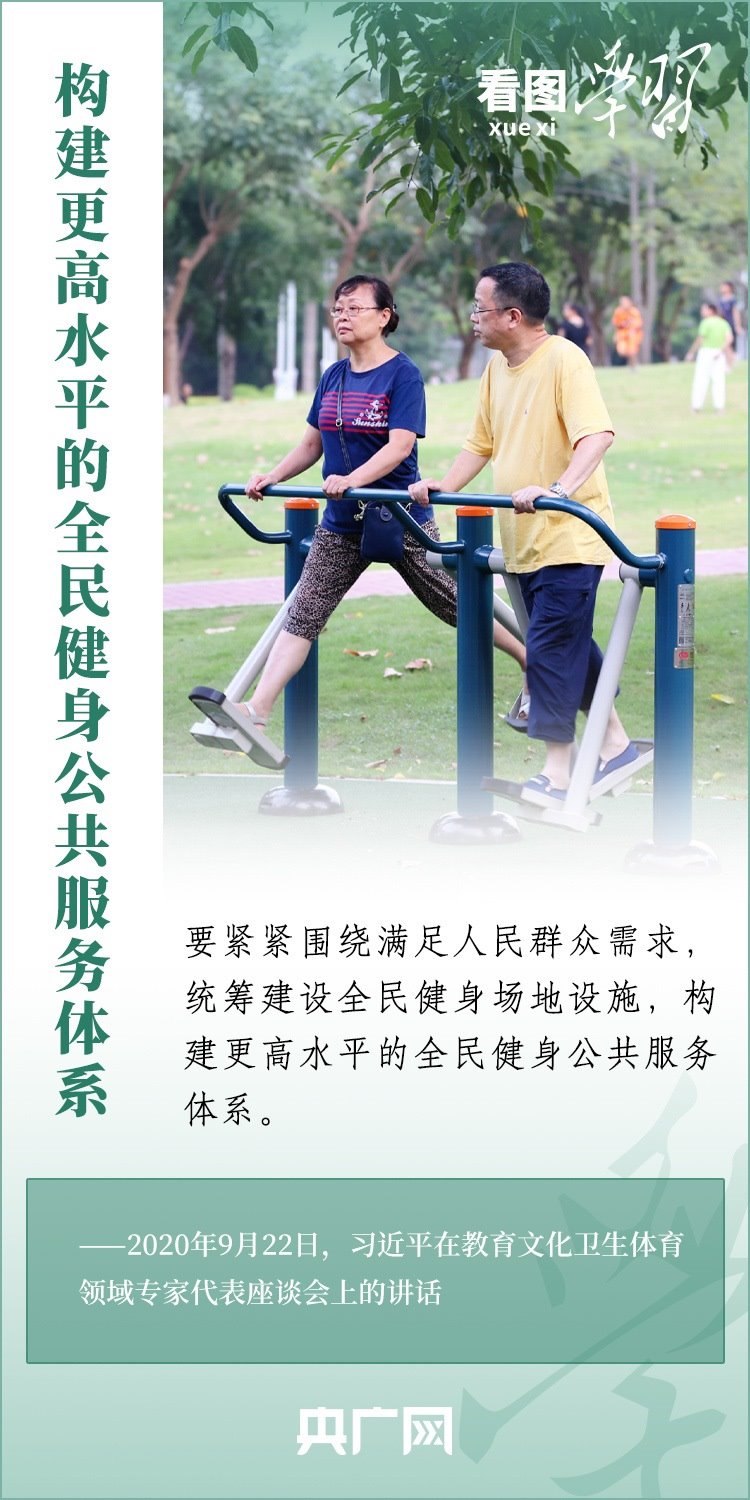 隨著我國(guó)城鄉(xiāng)居民生活水平不斷提高,運(yùn)動(dòng)健身日益成為我們?nèi)粘I钪械囊豁?xiàng)重要活動(dòng)。2014年,我國(guó)將全民健身上升為國(guó)家戰(zhàn)略。習(xí)近平總書記親自謀劃、親自推動(dòng)全民健身事業(yè)發(fā)展,對(duì)實(shí)施全民健身戰(zhàn)略、加快建設(shè)體育強(qiáng)國(guó)作出系列重要論述。今天(8月8日)是第15個(gè)全民健身日,一起來學(xué)習(xí)!