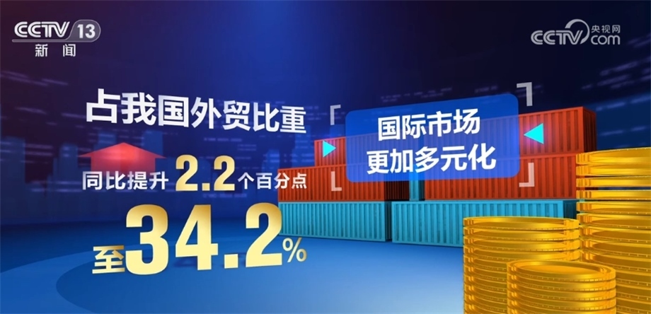 我國對“一帶一路”沿線國家進出口8.06萬億元,同比增長7.4%,占我國外貿(mào)比重同比提升2.2個百分點至34.2%,國際市場更加多元化。