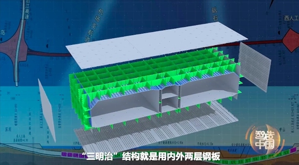 顧名思義,“三明治”結(jié)構(gòu)就是用內(nèi)外兩層鋼板造出巨型鋼殼,然后在兩層鋼板的隔艙之間進行混凝土澆筑。