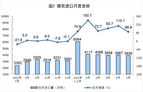 1—7月份,生產(chǎn)原煤26.7億噸,同比增長3.6%。進(jìn)口煤炭2.6億噸,同比增長88.6%。