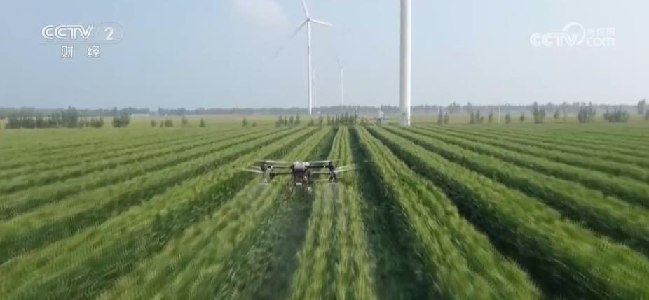在山東省德州市武城縣,2萬畝復(fù)合種植的玉米和大豆長勢旺盛。李希軍2023年種植的1600多畝地,采用了玉米4行、大豆4行,兩種作物帶狀間作模式。他告訴記者,這段時間當(dāng)?shù)亟涤觐l繁,部分地塊出現(xiàn)褐斑病、玉米螟蟲等病蟲害。李希軍第一時間請來農(nóng)技人員和飛防隊(duì)進(jìn)行針對性防控作業(yè)。