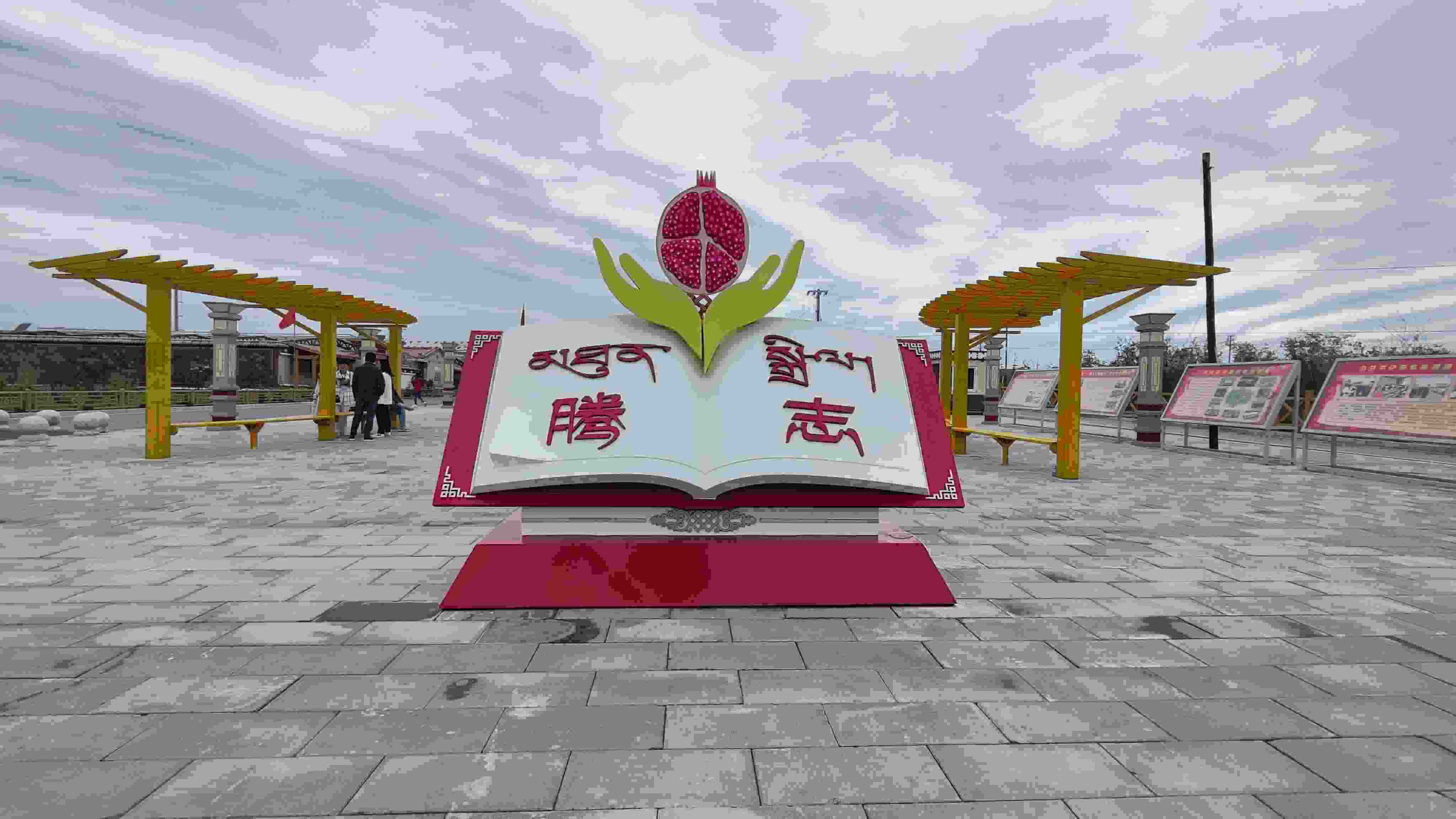 這些向好的變化離不開每一位村民的團(tuán)結(jié)友愛、互幫互助。村口的廣場中間有一本打開的書,書頁上一雙手托舉著一個鮮艷的石榴,這就是果洛藏貢麻村新修建的“騰志”廣場?!膀v志”在藏語中意為“團(tuán)結(jié)”,這也寓意著各民族像石榴籽一樣緊緊抱在一起,共育團(tuán)結(jié)花,共享幸福果。