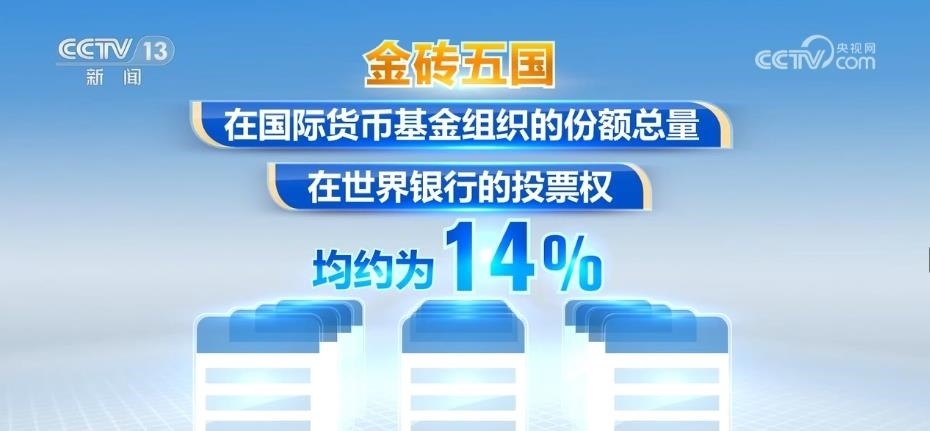 金磚五國(guó)的人口總和、國(guó)土面積、經(jīng)濟(jì)總量、貿(mào)易總額在全球的占比分別約為42%、26%、25%和18%。五國(guó)在國(guó)際貨幣基金組織的份額總量和在世界銀行的投票權(quán)均約為14%。