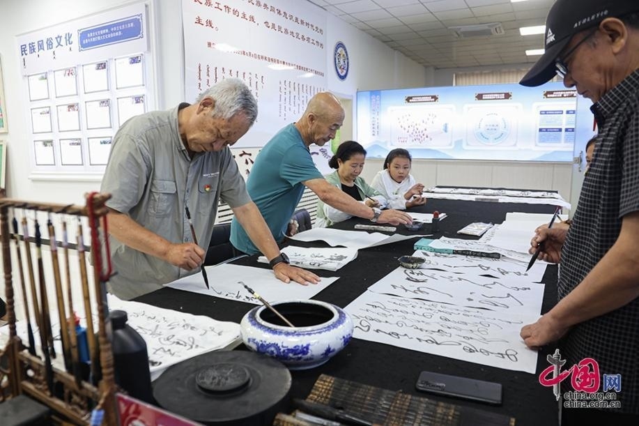 在臨潢家園社區(qū)便民服務中心內,居民們正在練習書法。中國網記者 倫曉璇 攝