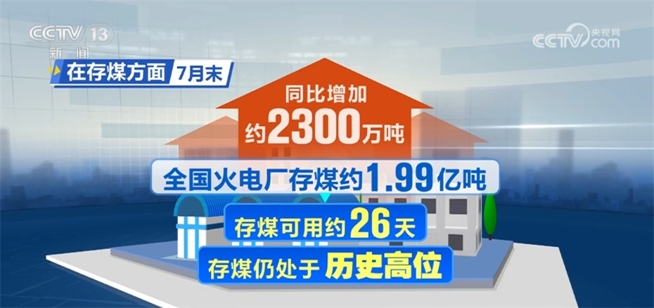 在存煤方面,7月末,全國火電廠存煤約1.99億噸,同比增加約2300萬噸,存煤可用約26天,存煤仍處于歷史高位。