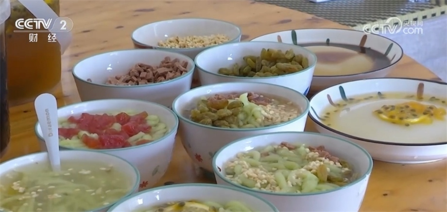 此外,根據(jù)個(gè)人的口味還可以加入西瓜、葡萄干等輔料,就做成了一道道可口的甜品。