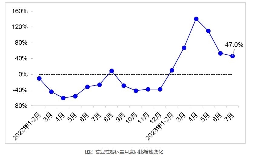 營業(yè)性客運(yùn)方面,7月完成營業(yè)性客運(yùn)量9.1億人,同比增長47.0%。其中,完成公路客運(yùn)量4.1億人,同比增長19.3%;完成水路客運(yùn)量3034萬人,同比增長78.3%。1—7月,完成營業(yè)性客運(yùn)量52.3億人,同比增長54.6%。其中,完成公路客運(yùn)量25.5億人,同比增長18.7%;完成水路客運(yùn)量1.5億人,同比增長128.8%。?