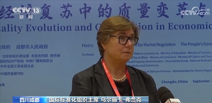 國際標準化組織主席 烏爾麗卡·弗蘭克:總體來說,中國在過去幾年的成就是非凡的,無論是在質(zhì)量提升方面、制定質(zhì)量標準方面,還是在國際貿(mào)易方面都是如此。