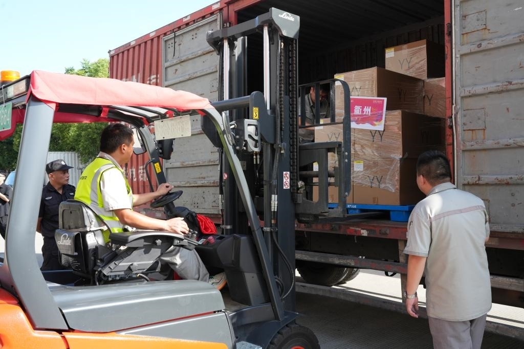 9月4日,工作人員將火炬裝車運往各地。新華社記者 翁忻旸 攝
