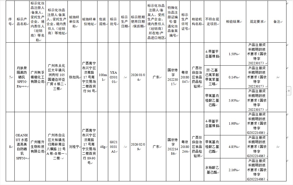 國家藥監(jiān)局網(wǎng)站今天發(fā)布通告稱,在2023年國家化妝品抽樣檢驗(yàn)工作中,經(jīng)重慶市食品藥品檢驗(yàn)檢測研究院等單位檢驗(yàn),產(chǎn)品標(biāo)簽標(biāo)示為廣州市天科化妝品有限公司生產(chǎn)的天科染發(fā)膏(自然黑)等23批次化妝品不符合規(guī)定(見下圖表格)。