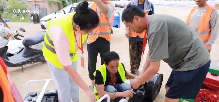 村里有5個蓄水坑,郭義停緊急協(xié)調(diào)多臺排水設(shè)備,將蓄水坑排空,分擔降雨壓力。