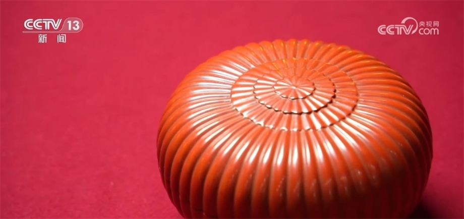 總臺記者 楊雪:與多穆壺一樣,很多文物都是逐漸從生活用品演化成為藝術品的。像我們眼前看到的這一款清乾隆款朱漆菊瓣盒就是其中之一。它本來是盛放像干果、小點心等這些小件物品的盒子,在不斷使用的過程中,逐漸演化成為了宮廷藝術品。