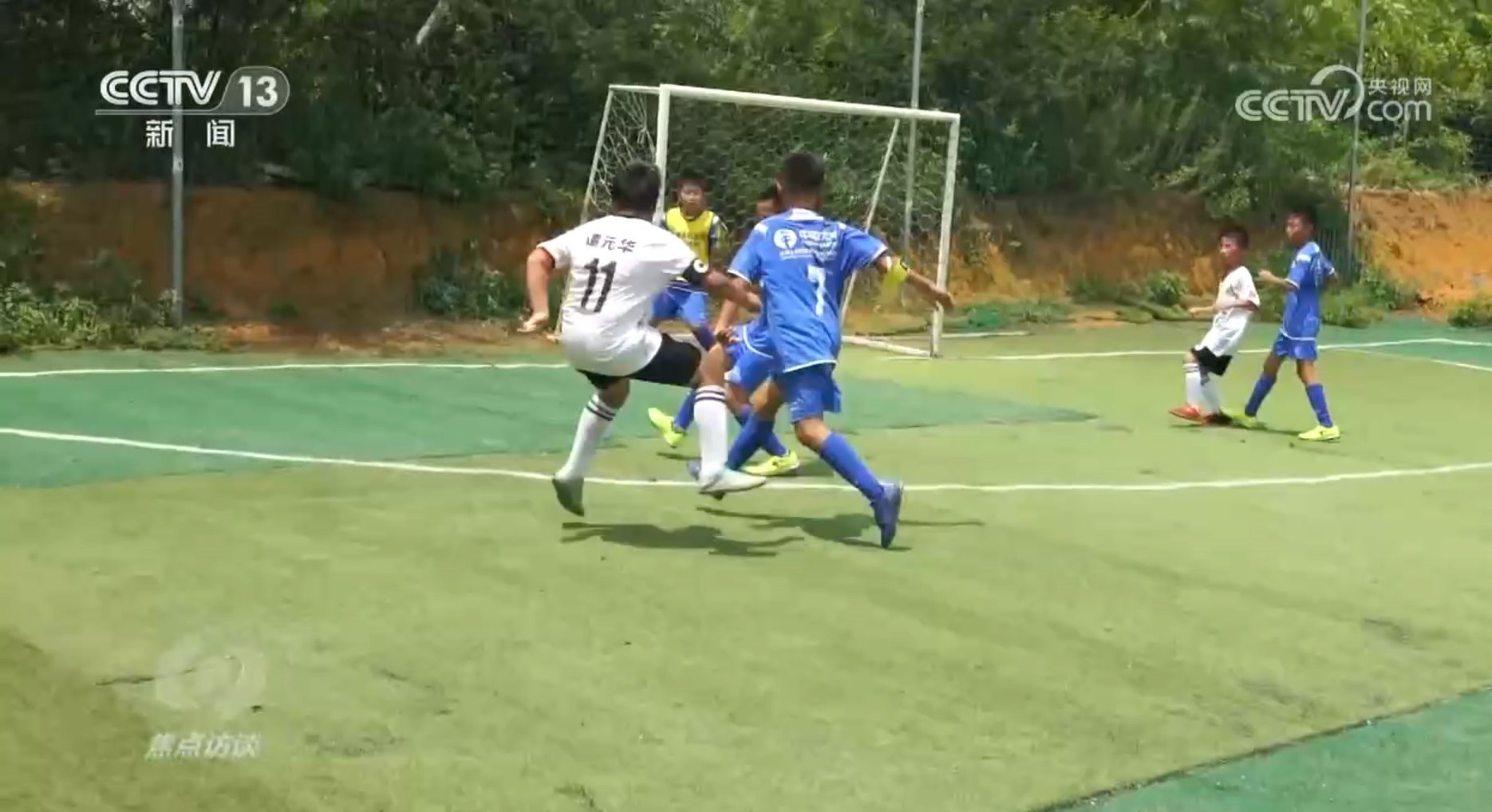 奔跑、傳球、拼搶、射門,在廣西柳州柳江區(qū)穿山鎮(zhèn)高平村平地屯,一場別開生面的足球訓(xùn)練賽正在進(jìn)行著,別看藍(lán)白兩隊(duì)的隊(duì)員們還都只是附近村屯的小學(xué)生,可是踢起球來一點(diǎn)也不含糊。