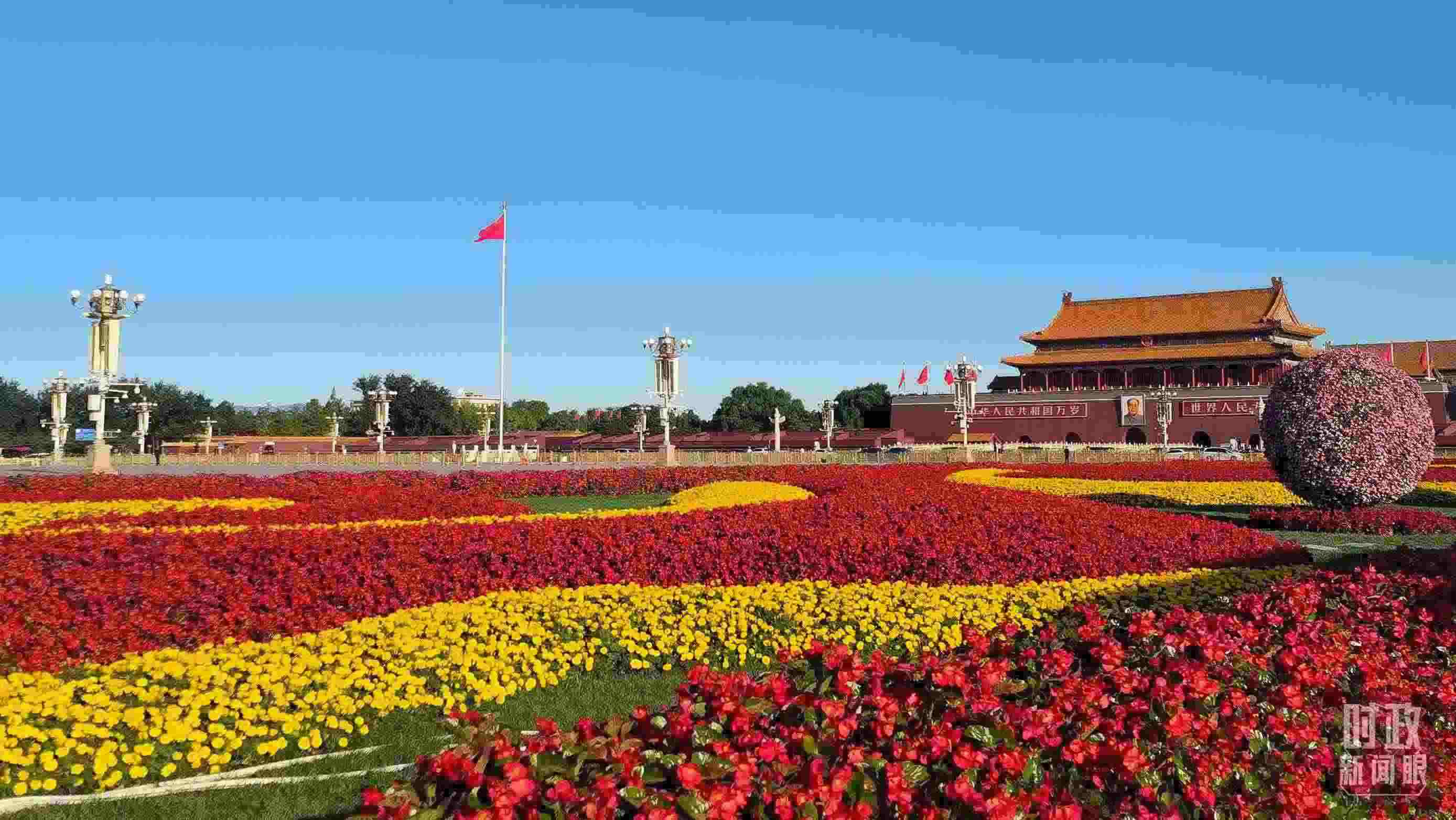 △天安門(mén)廣場(chǎng),花團(tuán)錦簇。(總臺(tái)央視記者韓銳拍攝)