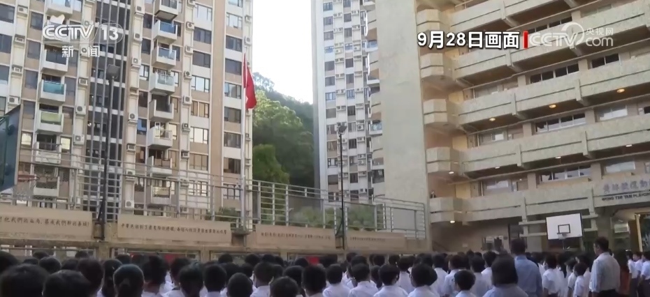 央視網(wǎng)消息:為慶祝中華人民共和國成立74周年,9月28日,香港培僑中學(xué)邀請解放軍駐香港部隊三軍儀仗隊來校為全體師生舉行升國旗儀式。培僑中學(xué)是新中國成立后首批升起五星紅旗的香港學(xué)校之一,從那時起,升國旗的儀式在培僑中學(xué)代代相傳,迄今已經(jīng)延續(xù)了74年。