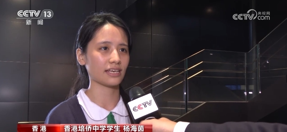 香港培僑中學(xué)學(xué)生 楊海茵:我們的國家現(xiàn)在非常繁榮昌盛,我們也身處在一個非常和平的環(huán)境中,為我們的國家感到非常自豪。(我們要)做一個對香港、對社會、對國家有貢獻(xiàn)的人。