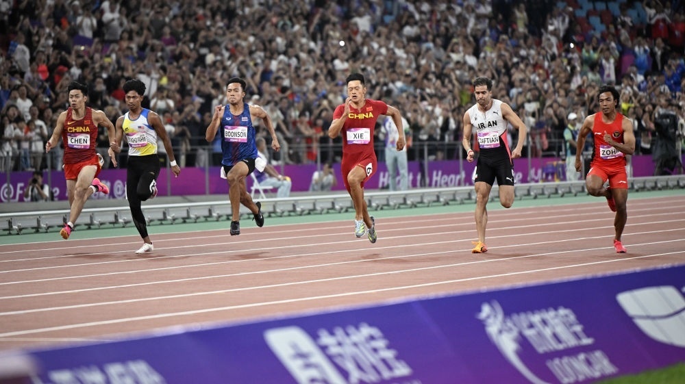 率先進行的女子100米決賽中,面對曾經(jīng)在今年亞錦賽上戰(zhàn)勝過自己的新加坡名將佩雷拉,扎著“哪吒頭”的葛曼棋頂住壓力,憑借強有力的沖刺以11秒23率先撞線。隨后的男子決賽,名將謝震業(yè)戰(zhàn)勝了對手,也戰(zhàn)勝了自己。9秒97的奪冠成績是他繼2018年之后,時隔5年再次突破10秒大關。雖然2.4米每秒的順風風速讓他的成績不能被計為達標巴黎奧運會的有效成績,但謝震業(yè)賽后表示,雖然超了風速,但是成績就在這里,戰(zhàn)勝了自己心里就沒有遺憾。