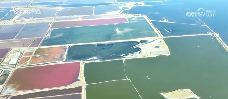 在強光作用下,千年鹽湖內(nèi)的藻類和礦物質(zhì)發(fā)生反應(yīng),呈現(xiàn)出迷人的七彩湖光,仿佛一張巨型的自然“調(diào)色盤”,令觀者驚艷贊嘆。中秋、國慶假期期間,水光瀲滟、色彩斑斕的鹽湖也吸引了大批游客前來觀賞。近年來,當?shù)丶哟篼}湖生態(tài)治理和保護力度,越來越多的動物選擇來到這里安家。截至目前,已經(jīng)有100多種鳥類在這里棲息、繁衍。