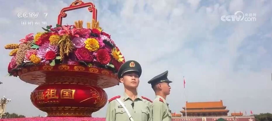 在北京,天安門廣場內祝福祖國的巨型花籃吸引著眾多游客前來觀賞拍攝。武警官兵在完成好巡邏執(zhí)勤任務的同時,協助工作人員進行游客疏導也成為一項重要的工作。