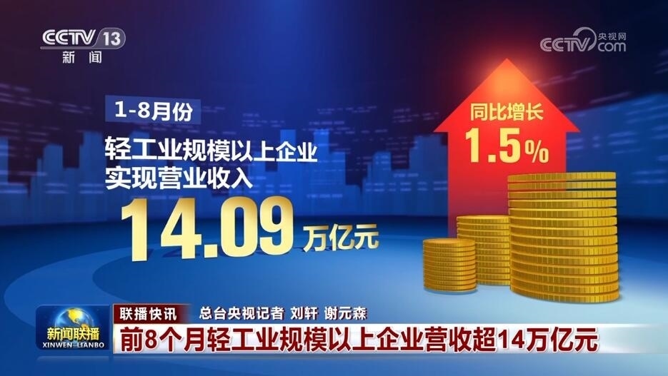前8個(gè)月輕工業(yè)規(guī)模以上企業(yè)營(yíng)收超14萬(wàn)億元