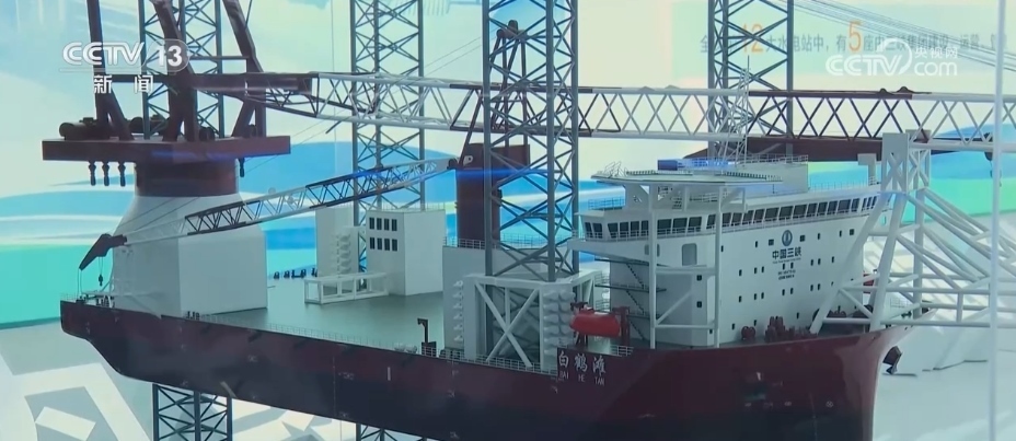 這是目前國(guó)內(nèi)最先進(jìn)的海上風(fēng)電安裝平臺(tái)“白鶴灘”號(hào)的模型,“白鶴灘”號(hào)也是全球首艘新一代2000噸級(jí)海上風(fēng)電安裝平臺(tái)。