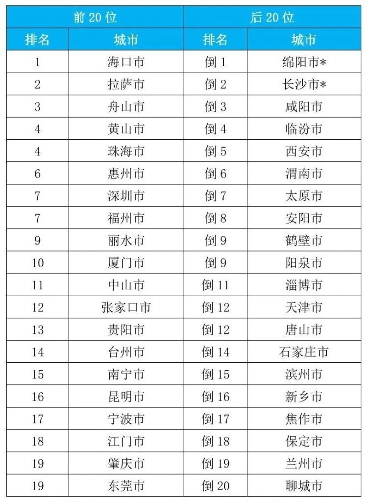 從重點城市排名看,1至9月,168個重點城市中,空氣質(zhì)量排名前20位城市依次是???、拉薩和舟山等城市(從第1名至并列第19名);空氣質(zhì)量排名后20位城市依次是綿陽、長沙和咸陽等城市(從倒數(shù)第1名至倒數(shù)第20名)。據(jù)了解,綿陽市的一個監(jiān)測站點4月和5月、長沙市的一個監(jiān)測站點6月受到嚴重人為干擾,生態(tài)環(huán)境部對所在城市當月六項污染物濃度進行了最大值替代處理。(記者高敬)