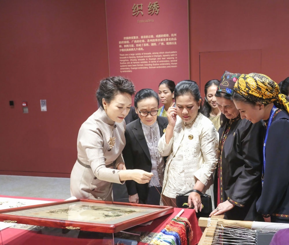 新華社北京10月18日電(記者溫馨)10月18日上午,國(guó)家主席習(xí)近平夫人彭麗媛邀請(qǐng)出席第三屆“一帶一路”國(guó)際合作高峰論壇的外方領(lǐng)導(dǎo)人夫人參觀中國(guó)工藝美術(shù)館(中國(guó)非物質(zhì)文化遺產(chǎn)館)。
