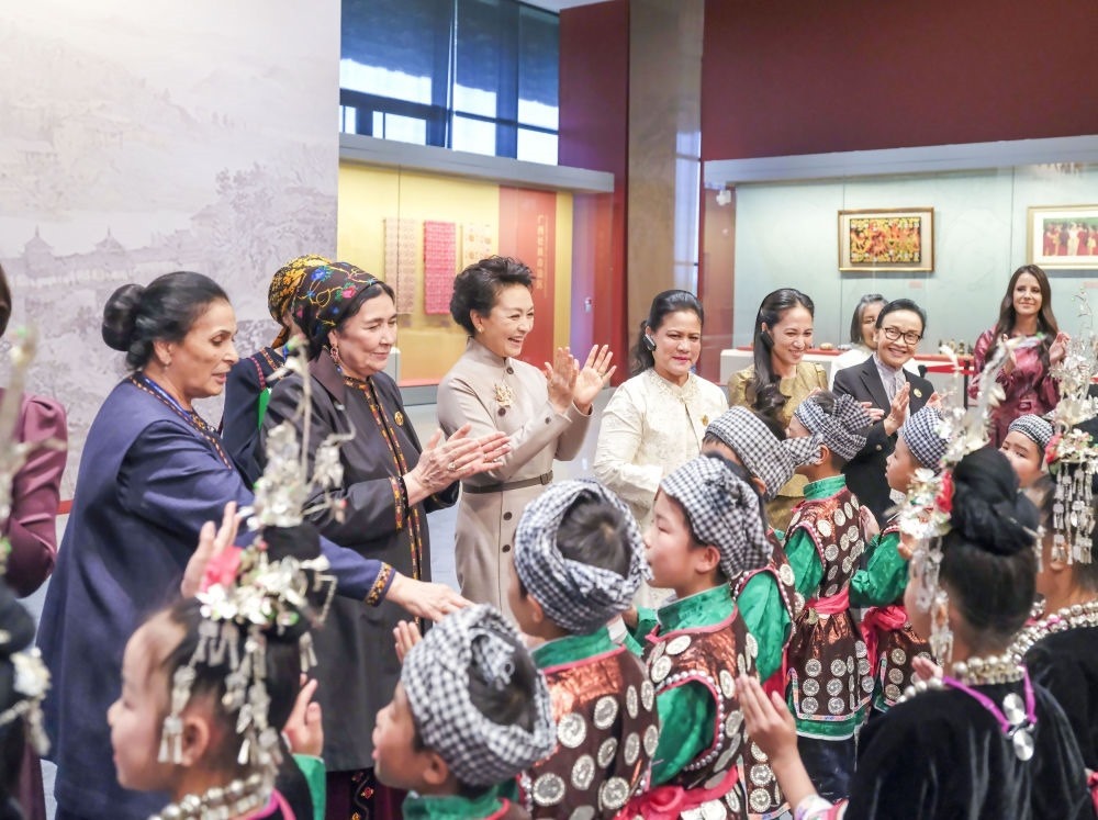 印度尼西亞總統(tǒng)夫人伊莉亞娜,肯尼亞總統(tǒng)夫人蕾切爾,老撾國(guó)家主席夫人娜麗,塞爾維亞總統(tǒng)夫人塔瑪拉,斯里蘭卡總統(tǒng)夫人麥特麗,土庫(kù)曼斯坦民族領(lǐng)袖、人民委員會(huì)主席夫人別爾德穆哈梅多娃,烏茲別克斯坦總統(tǒng)夫人米爾濟(jì)約耶娃,柬埔寨首相夫人碧占莫妮,匈牙利總理夫人雷沃伊,巴布亞新幾內(nèi)亞總理夫人雷切爾等參加上述活動(dòng)。