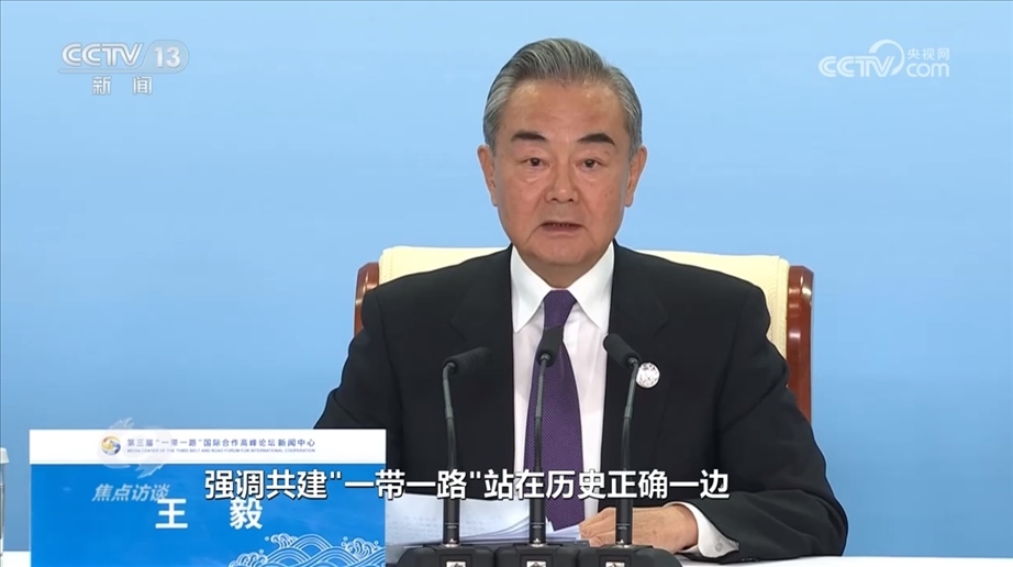 央視網(wǎng)消息(焦點(diǎn)訪談):10月18日,第三屆“一帶一路”國際合作高峰論壇在北京舉行。十年櫛風(fēng)沐雨,十年春華秋實(shí)。中國同各國堅(jiān)守初心、攜手同行,推動“一帶一路”國際合作從無到有,蓬勃發(fā)展,取得豐碩成果。本次高峰論壇是共建“一帶一路”進(jìn)程中又一個重要里程碑。10月18日當(dāng)晚,在高峰論壇結(jié)束之際,中共中央政治局委員、外交部長王毅舉行中外記者會,介紹高峰論壇重要成果。