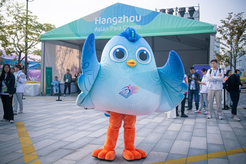 10月16日,杭州亞殘運(yùn)會(huì)吉祥物“飛飛”在亞殘運(yùn)村開村儀式上。新華社記者 江漢 攝