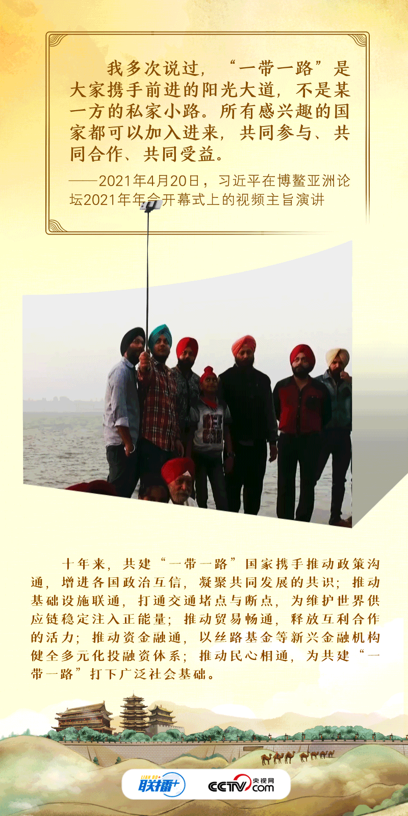 和平合作是絲路精神的核心要義,也是共建“一帶一路”的前提條件。十年來(lái),中國(guó)與共建各方傳承絲路精神,努力將“一帶一路”打造成為承載希望與夢(mèng)想的和平之路。