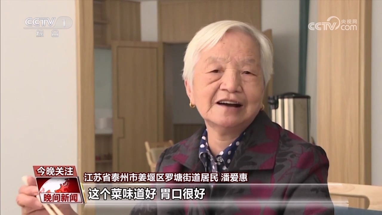 江蘇省泰州市姜堰區(qū)羅塘街道居民 潘愛(ài)惠:這個(gè)飯也煮得很好吃,這個(gè)菜味道好,胃口很好。