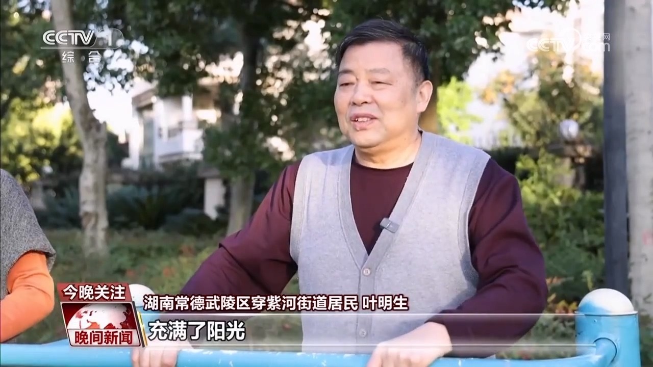 湖南常德武陵區(qū)穿紫河街道居民 葉明生:我們老年人現(xiàn)在的生活確實(shí)好過(guò)了,充滿了陽(yáng)光,社區(qū)到處都有了體育器材、有運(yùn)動(dòng)場(chǎng)所、有健身場(chǎng)所,現(xiàn)在我們玩得多開(kāi)心啊。