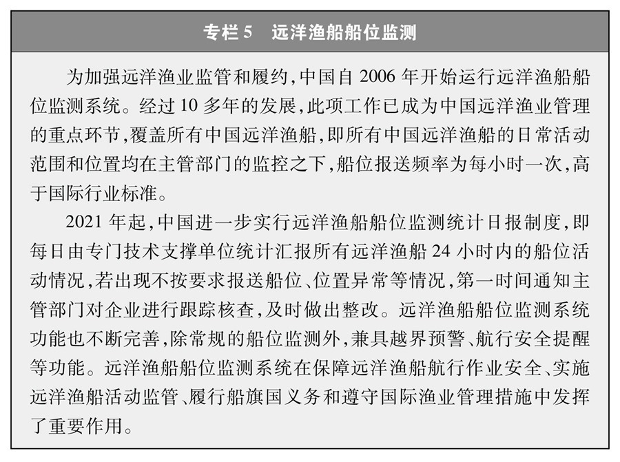 作為負(fù)責(zé)任的漁業(yè)國家,中國嚴(yán)格執(zhí)行《聯(lián)合國海洋法公約》以及加入的多邊漁業(yè)協(xié)定,從總量控制、限制船數(shù)、數(shù)據(jù)收集報(bào)送和國家觀察員制度等方面全面履行船旗國義務(wù)②,取得積極成效。