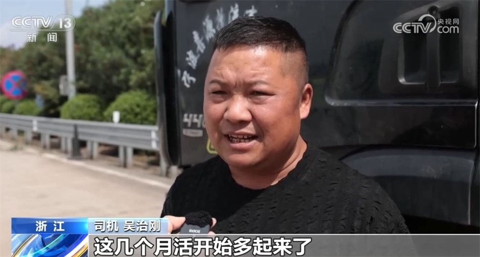 司機(jī) 吳治剛:我是義烏跑寧波港專線的,8月份跑了不到30趟,9月份還可以,跑了39趟。這幾個(gè)月活多起來(lái)了,越來(lái)越多了。