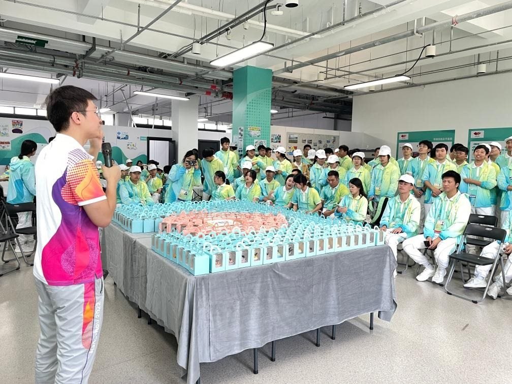 “我們?cè)缟衔妩c(diǎn)從學(xué)校出發(fā),晚上七點(diǎn)左右從場(chǎng)館離開(kāi)。這段時(shí)間雖然辛苦,卻很有意義,也結(jié)識(shí)到了不少朋友?!滨U明聰擦擦頭上的汗珠笑著說(shuō)。