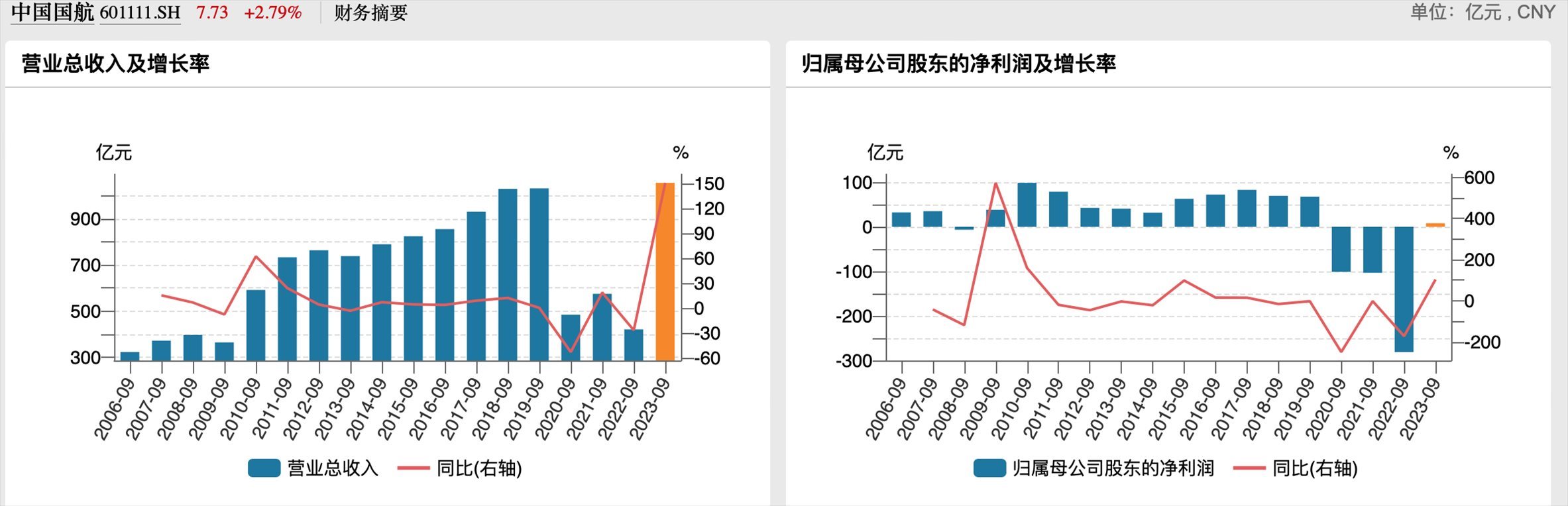國(guó)航歷年前三季度業(yè)績(jī)