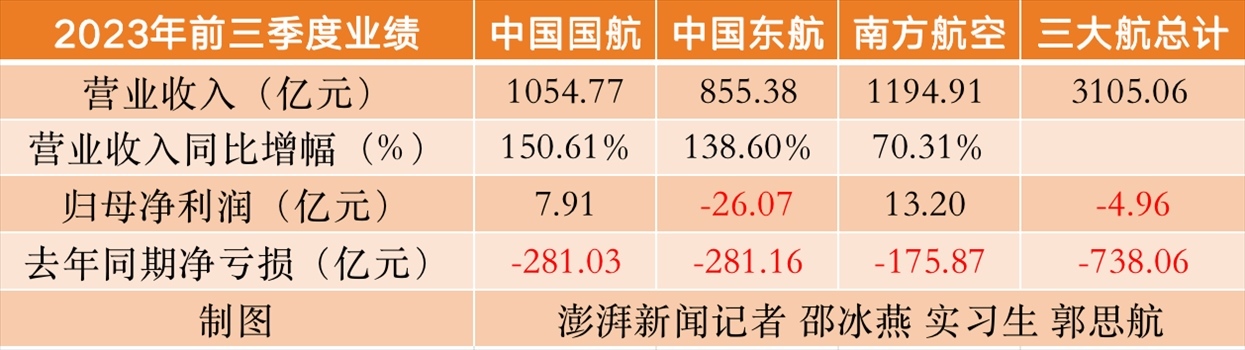 三大航第三季度營(yíng)收均創(chuàng)同期新高,單季均實(shí)現(xiàn)扭虧
