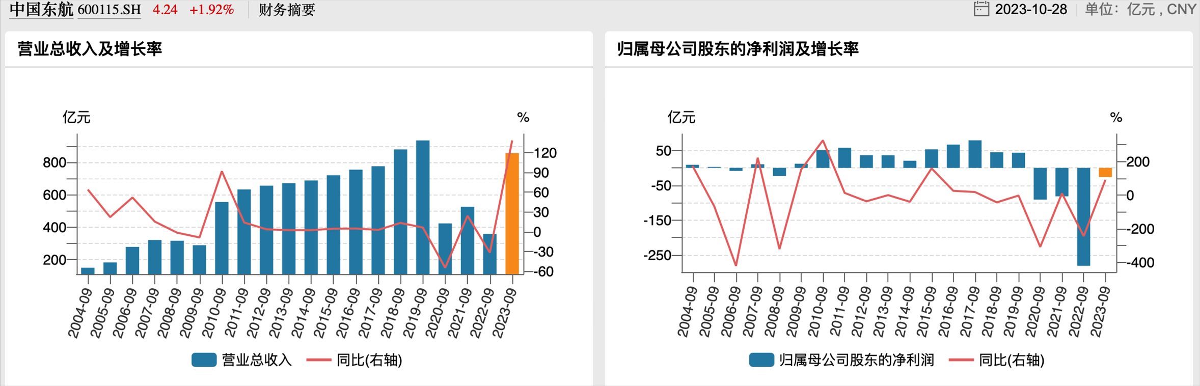 東航歷年三季度業(yè)績(jī)