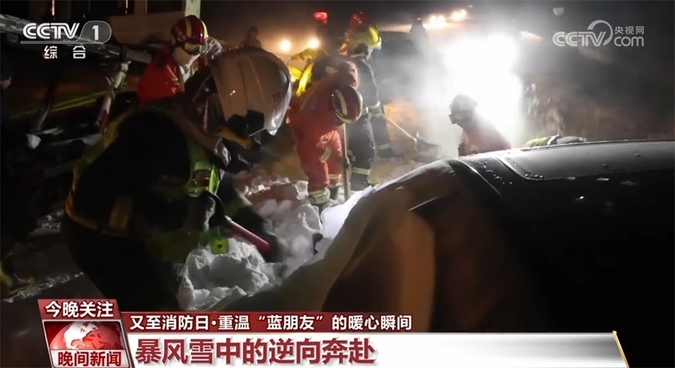 三月份的呼倫貝爾,暴雪在七級大風(fēng)的裹挾下形成風(fēng)吹雪的極端天氣,瞬間覆蓋了312國道上的過往車輛,車身被埋大半。頂著暴雪而來的消防員跪在雪地里,用鐵鍬挖、用手刨,爭分奪秒解救困車輛。救援從白天持續(xù)到夜間,消防員們從站著、跪著到躺在雪地上鏟雪,依次將27名被困人員、22輛車救離險(xiǎn)境。