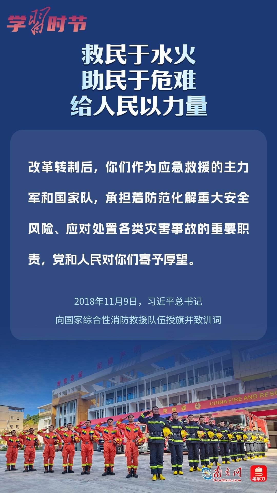 今年11月9日是習(xí)近平總書記為國家綜合性消防救援隊伍授旗并致訓(xùn)詞五周年,也是全國消防日。讓我們一起重溫總書記重要訓(xùn)詞,感受總書記對百姓安危的深情牽掛和對“火焰藍(lán)”的殷切期望。