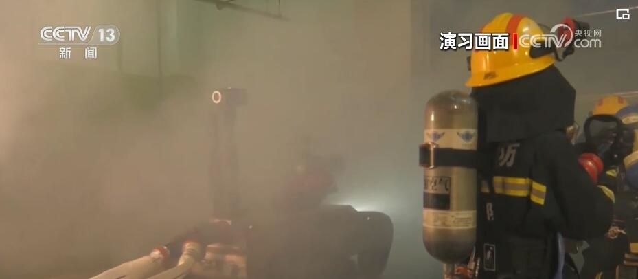 演習(xí)過(guò)程中,舉高噴射消防車從外部進(jìn)行滅火作業(yè)的同時(shí),多支消防救援小隊(duì)進(jìn)入商場(chǎng)內(nèi)部,在濃煙中實(shí)戰(zhàn)模擬火場(chǎng)搜救和滅火作戰(zhàn)。在救援人員的遙控指揮下,消防救援機(jī)器狗首先突入火場(chǎng),利用身上加裝的煙氣成分分析儀、攝像頭等多種設(shè)備,實(shí)時(shí)監(jiān)測(cè)環(huán)境危險(xiǎn)狀況,并對(duì)火場(chǎng)環(huán)境進(jìn)行偵察。在大火猛烈燃燒、建筑物結(jié)構(gòu)不穩(wěn)定情況下,消防救援人員遠(yuǎn)程控制無(wú)人滅火機(jī)器人首先進(jìn)入火場(chǎng),進(jìn)行前期滅火作業(yè)。為保障內(nèi)攻救援人員安全,消防員綜合定位系統(tǒng)也投入使用。每名消防員都攜帶平板終端和定位信標(biāo),指揮員可以實(shí)時(shí)掌握進(jìn)入火場(chǎng)人員的生命體征、實(shí)時(shí)位置。一旦救援人員遇險(xiǎn),系統(tǒng)能夠第一時(shí)間引導(dǎo)緊急救援小組展開營(yíng)救行動(dòng)。