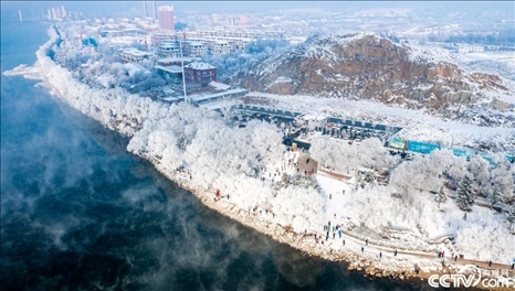 11月12日,吉林省吉林市現(xiàn)霧凇景觀,晶瑩潔白,美不勝收。