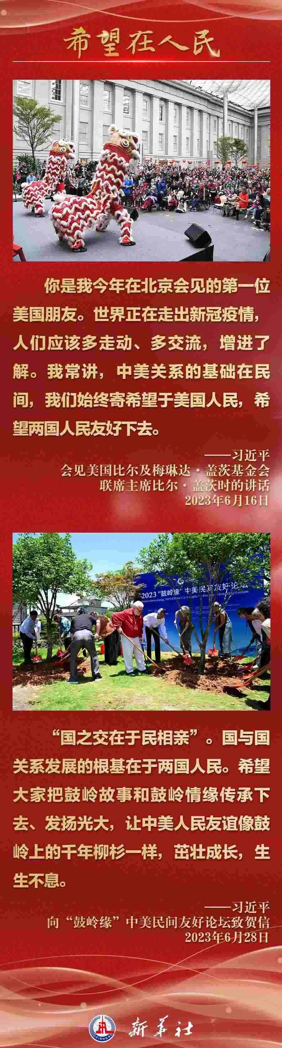 今年以來,從在京會見美國各界人士,到向“鼓嶺緣”中美民間友好論壇等活動致賀信,再到復信美國華盛頓州“美中青少年學生交流協(xié)會”、史迪威將軍后人、飛虎隊老兵等友好人士,習近平主席同美國各界真摯互動,強調(diào)中美關(guān)系基礎(chǔ)在民間,希望在人民,未來在青年,活力在地方。